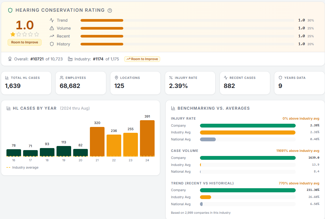 OSHA's ITA hearing loss data is public - but most companies never see it. We turn that data into actionable benchmarks so you know exactly where to focus.